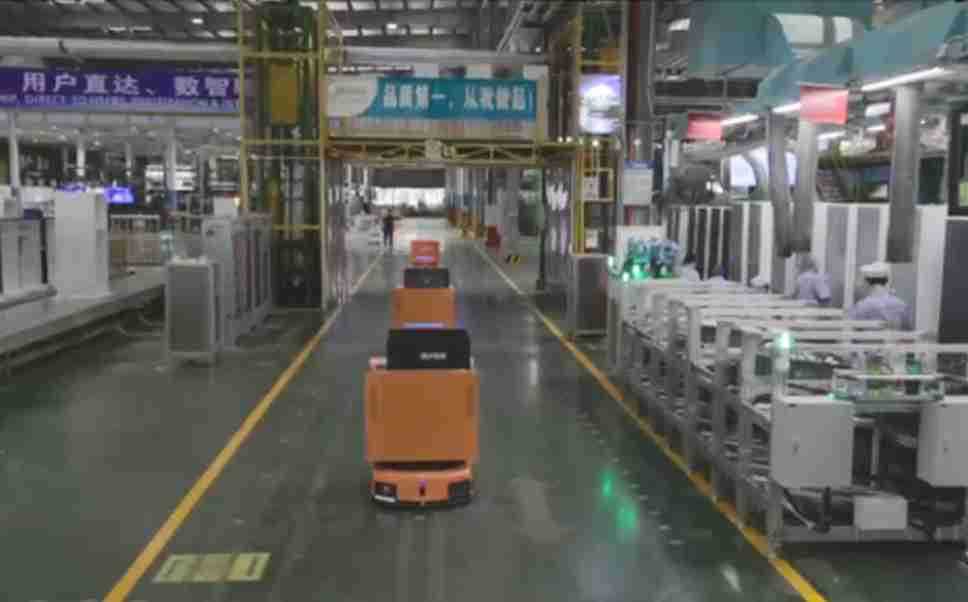 为车载冰箱物流配送打造的智能解决方案,,,,包含产中物流通过潜伏举升AMR搬运至线边,,,产后成品物流智能仓储,,,流程包含产中物流智能齐套入库,,线边安灯叫料AMR智能配送至线边,,,成品入库、、出库,,,,通过无人堆高车机器人,,,,智能仓储管理替代人工作业管理,,,实现更高存储、、更高效率、、、更具柔性化的解决方案。。